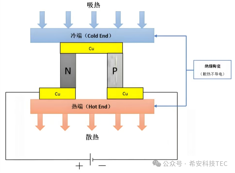 A: जेव्हा विद्युत प्रवाह दोन भिन्न वाहक किंवा अर्धसंवाहकांनी बनलेल्या सर्किटमधून जातो तेव्हा विद्युत् प्रवाहाच्या भिन्न दिशानिर्देशांमुळे उष्णता शोषण किंवा सोडणे दोन पदार्थांच्या संपर्क बिंदूवर होते. ही इलेक्ट्रोथर्मल रूपांतरणाची प्रक्रिया आहे आणि सीबेक प्रभावाची उलट प्रक्रिया आहे.